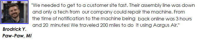When our airline flight cancelled, we were stuck. We called Aargus Air and they arranged to get us to our father's funeral in Kentucky on time. Cali & Brett Y..