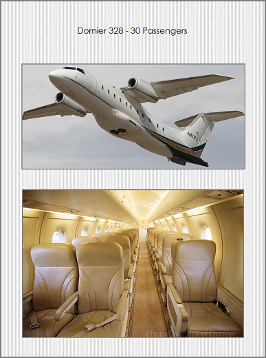 FAIRCHILD DORNIER 328 $$$$$$ - The 328 can carry up to 30 passengers on regional trips at 570 mph. It is essentially, a small airliner. Great for large groups at 570 mph. view image
